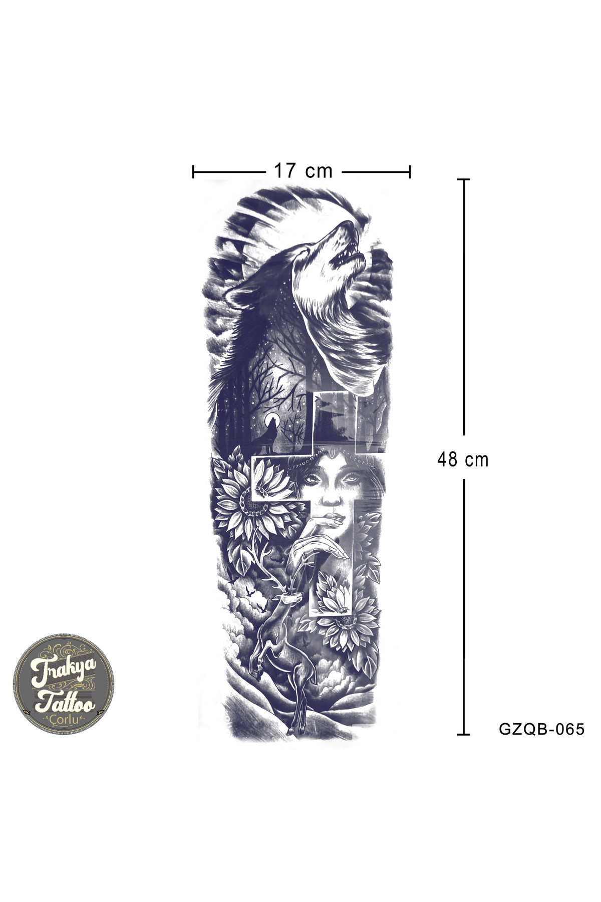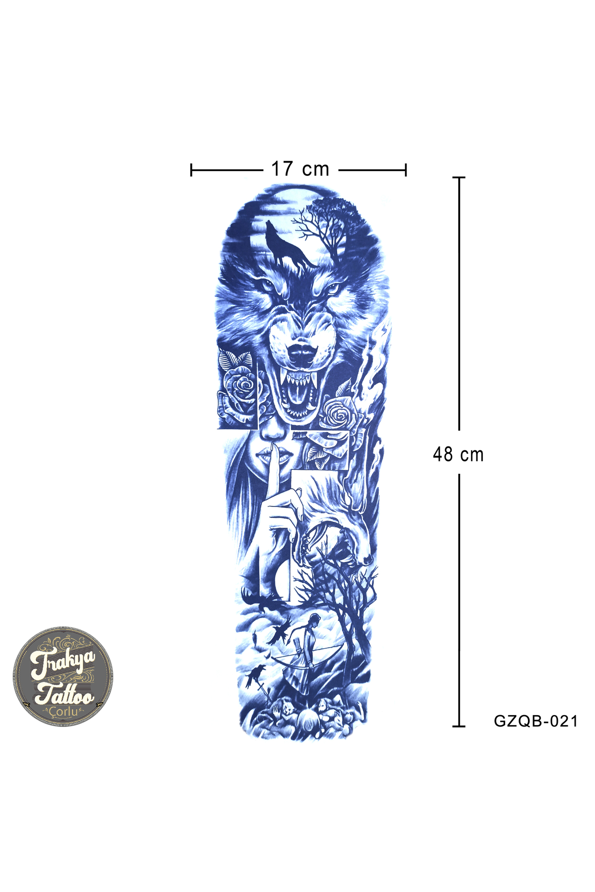 1 Ay Kalıcı Dövme Tam Kol Kurt ve Kadın Geçici Dövme GZQB-065