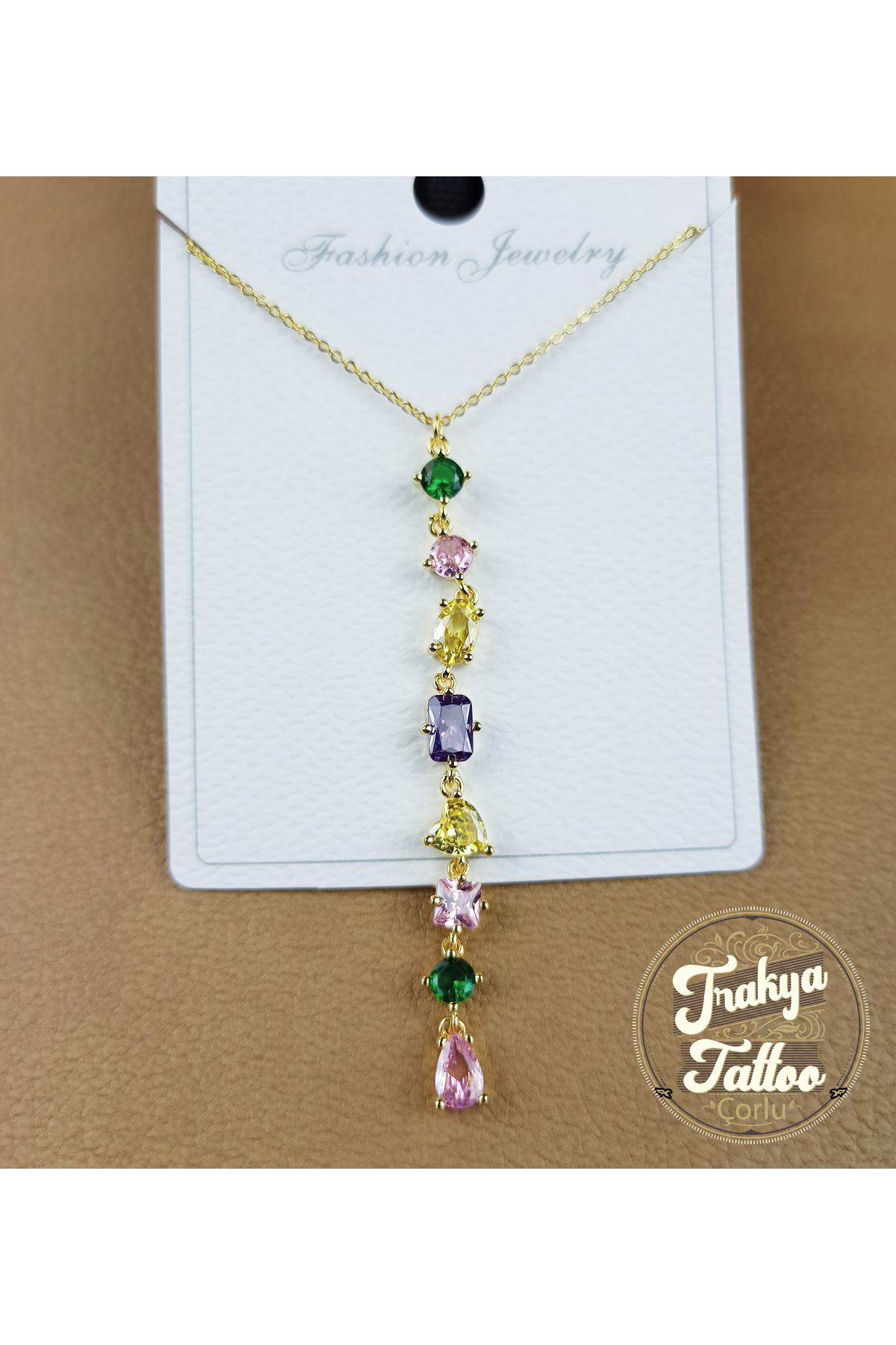 8 Taşlı Altın Rengi Kolye