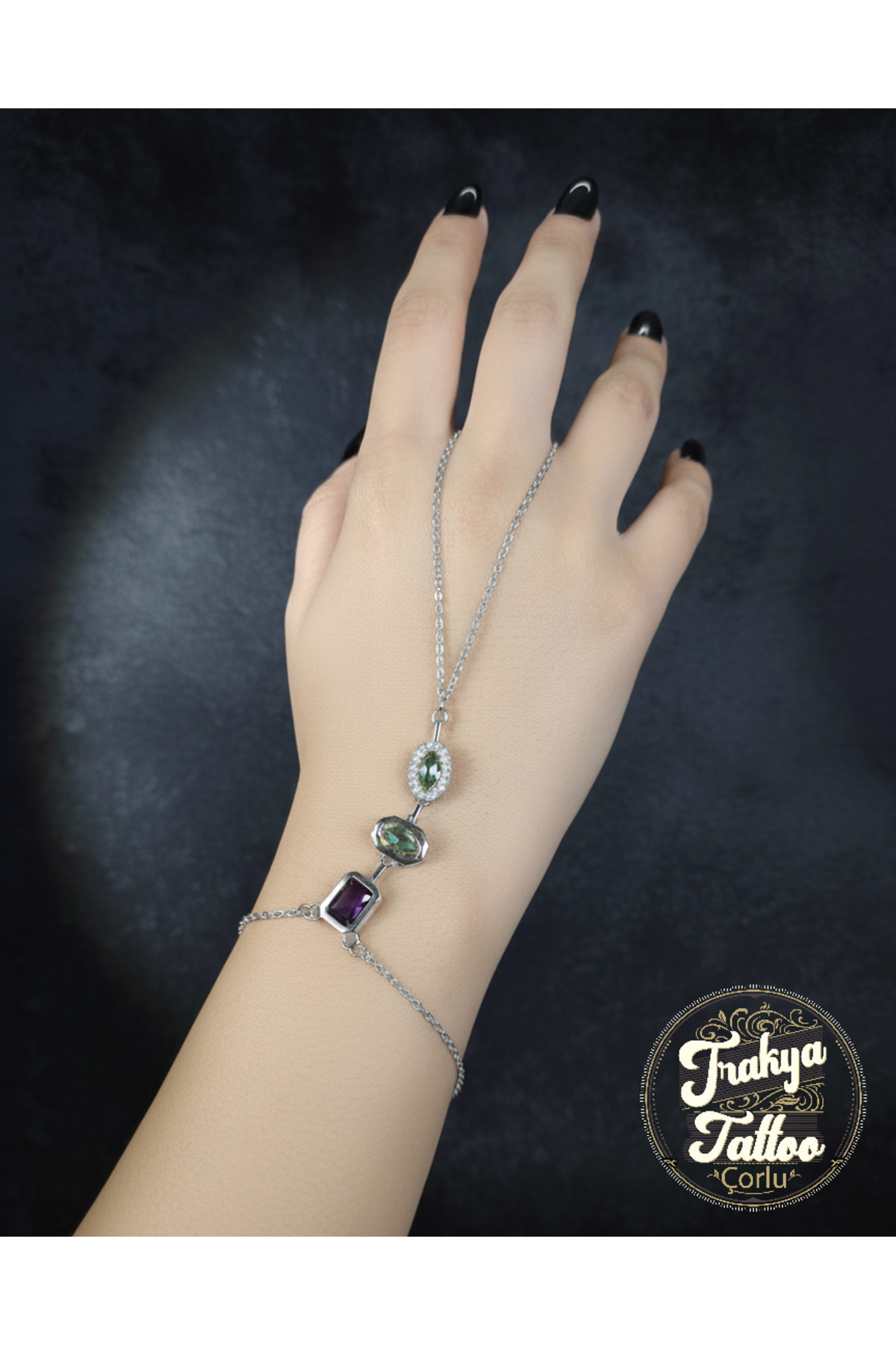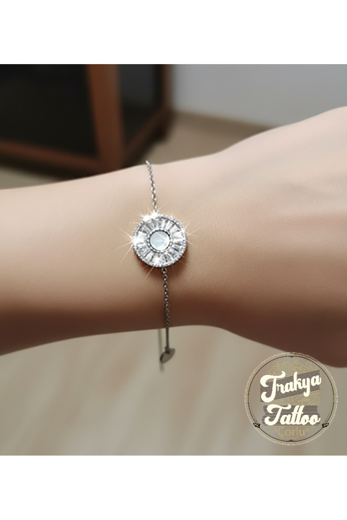 Yuvarlak Taşlı Gümüş Renk Zincir Bileklik