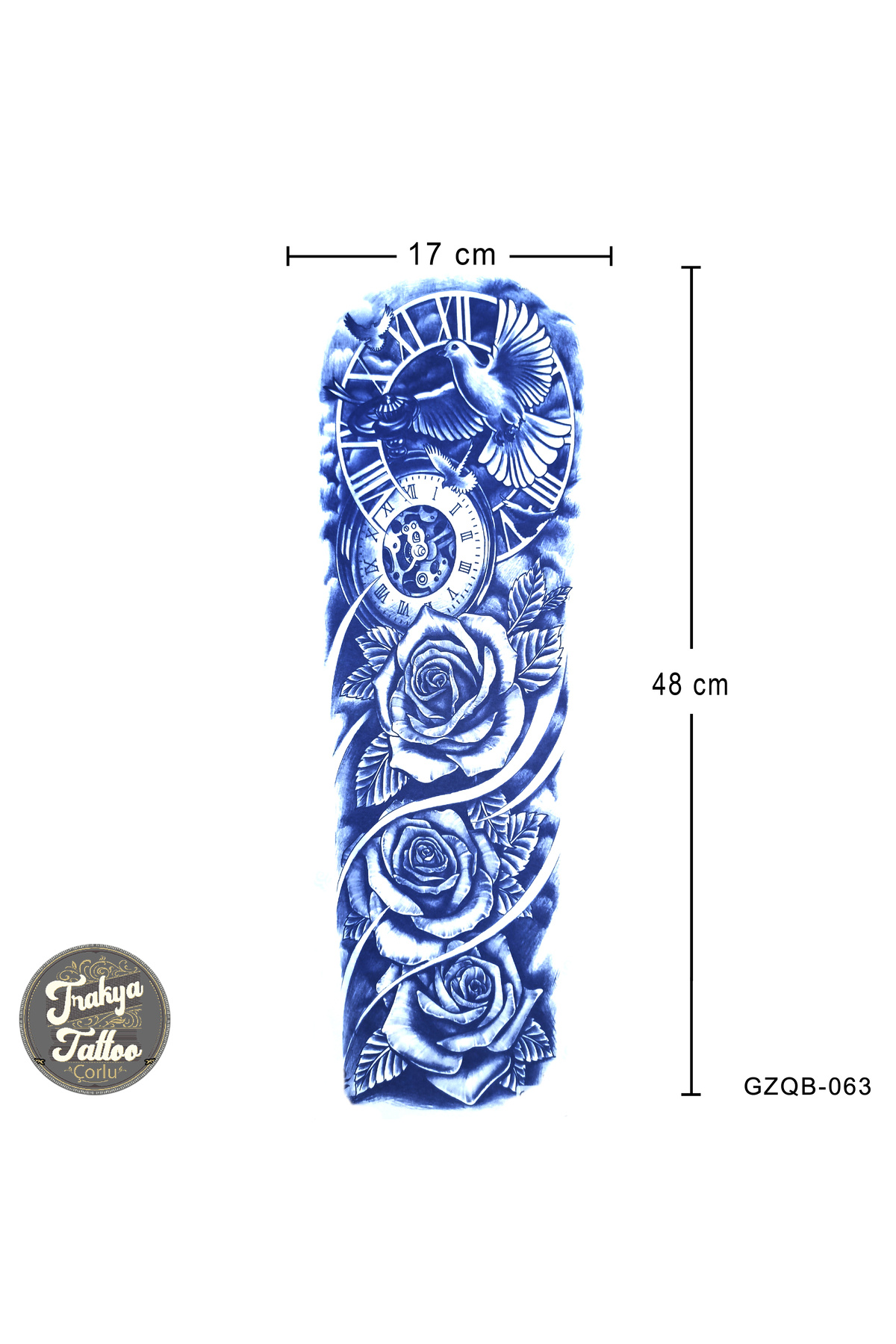 1 Ay Kalıcı Dövme Geçici Tam Kol Gül Güvercin Saat Dövme