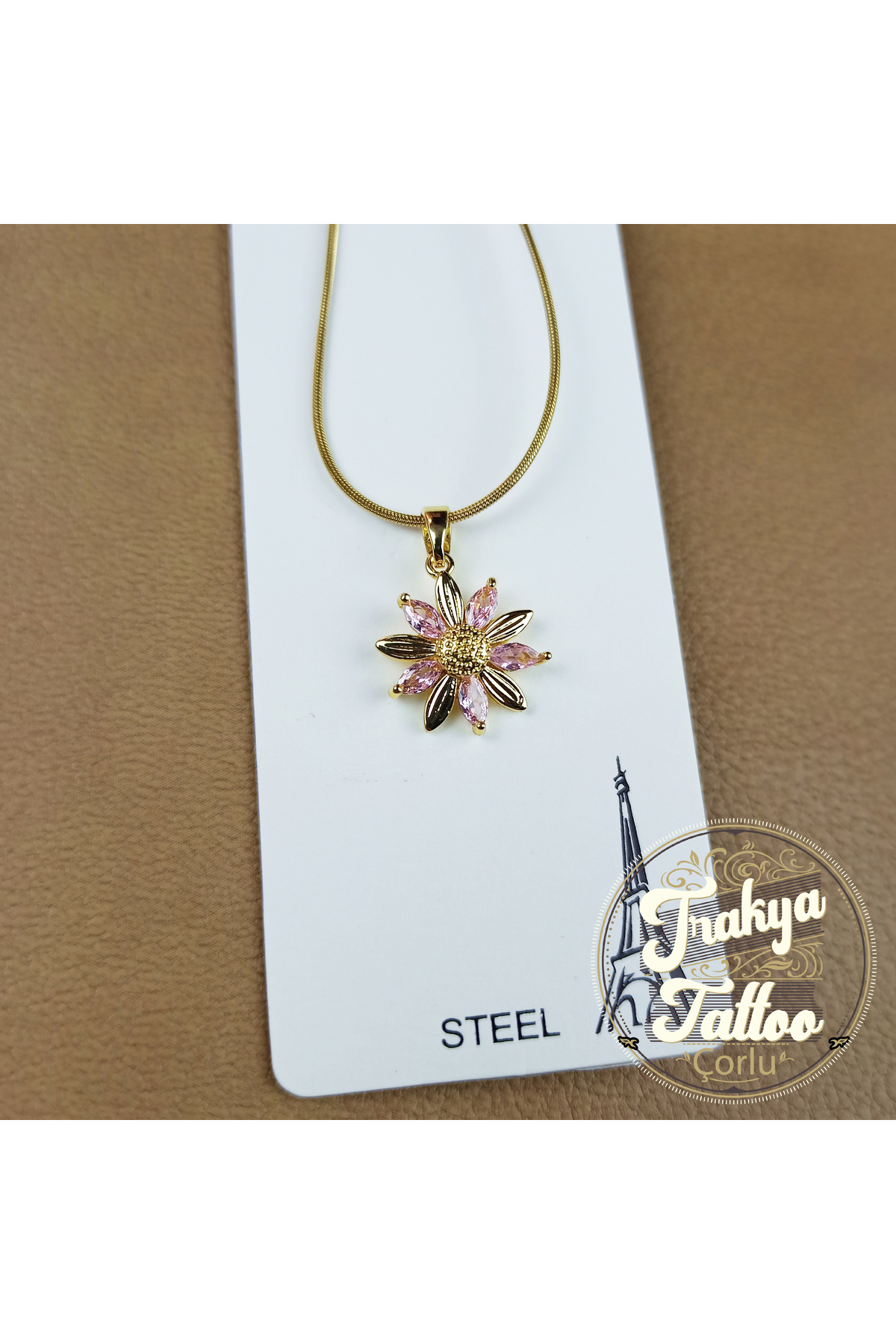 Papatya Motifli Altın Rengi Çelik Kolye