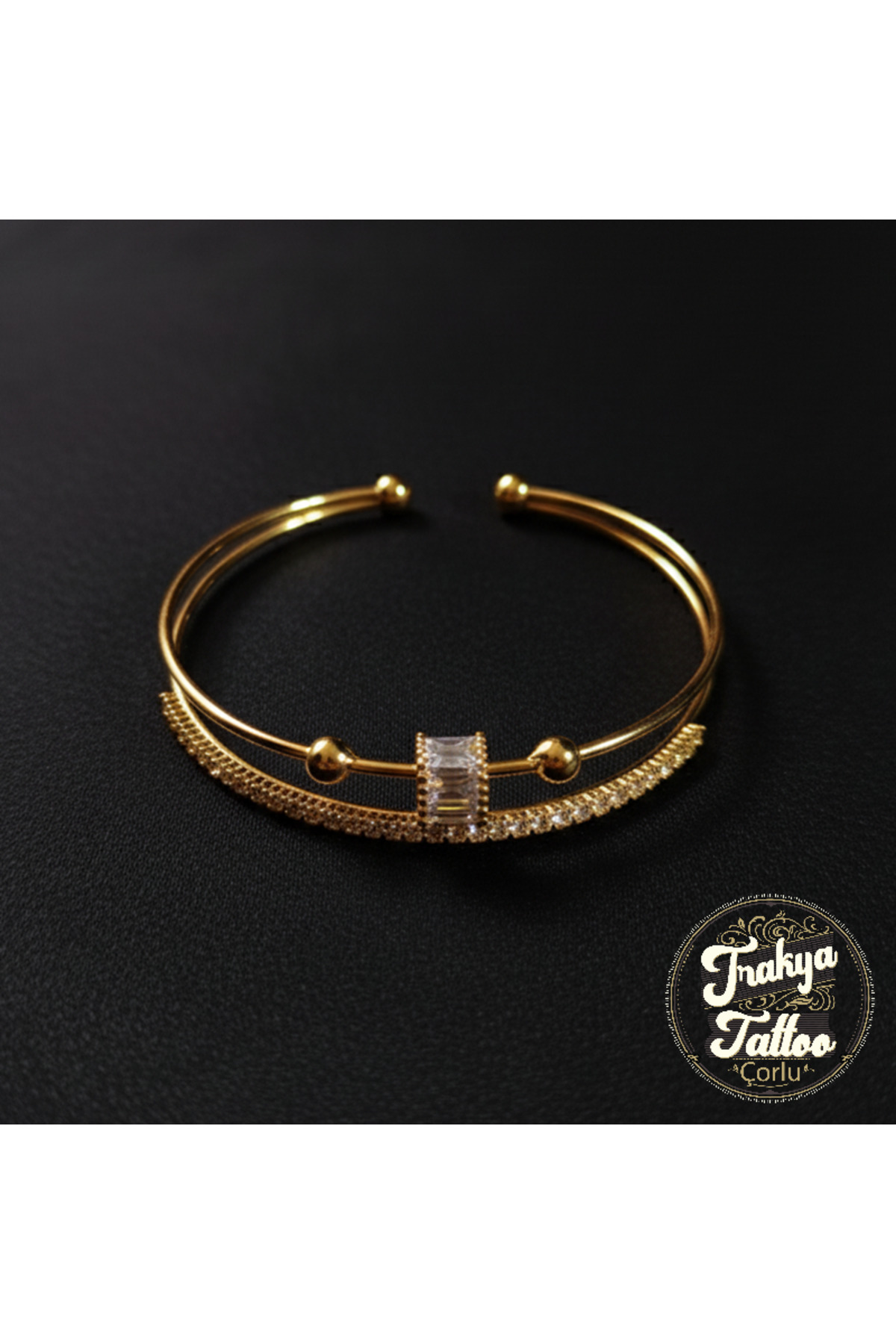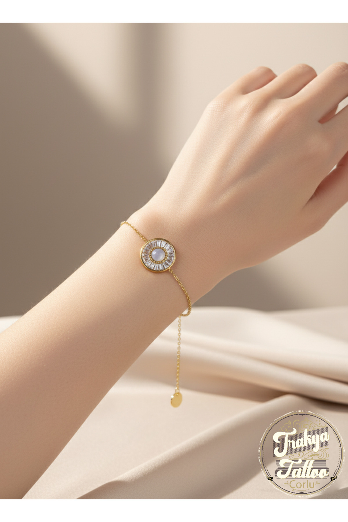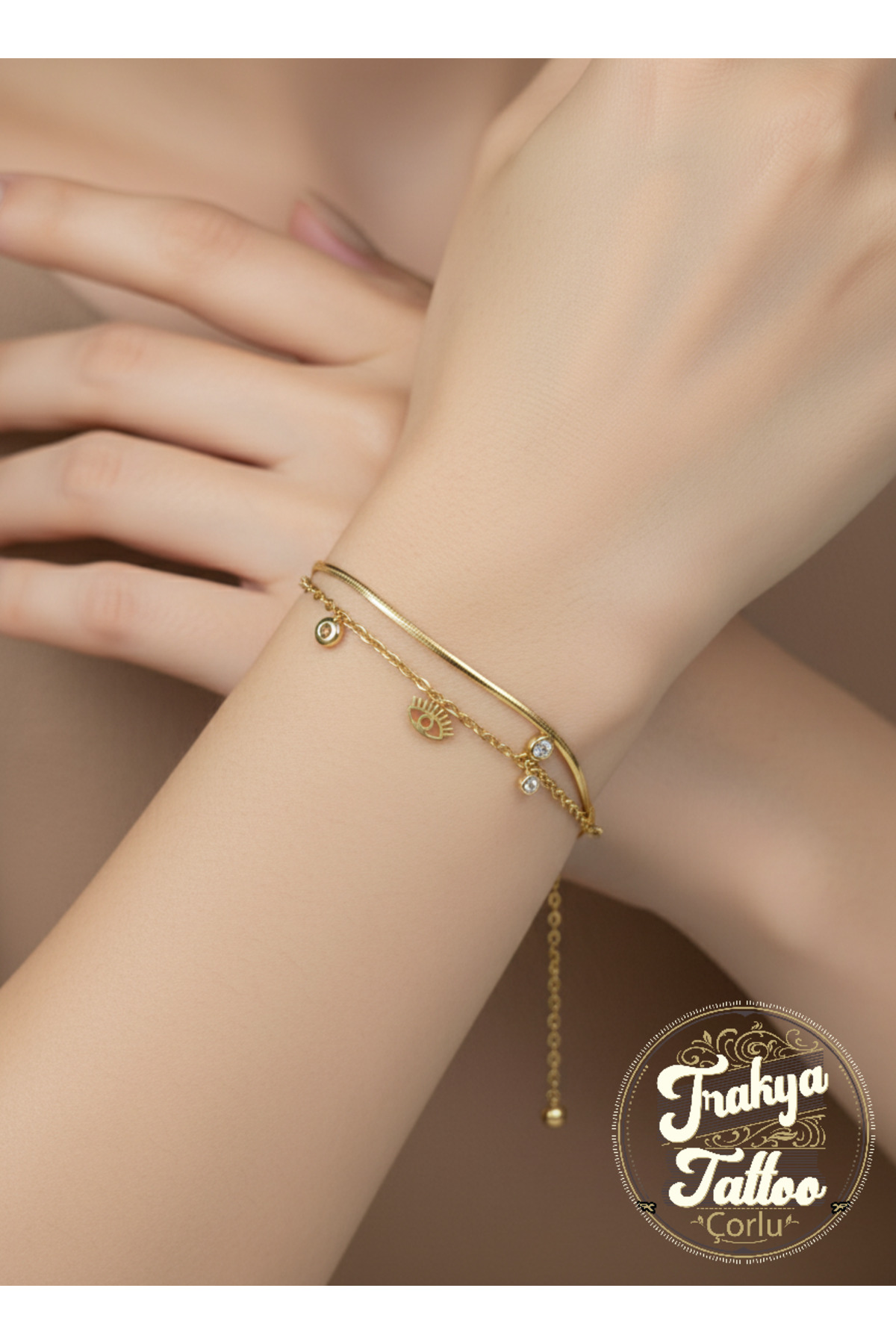 Altın Rengi Göz ve Taş Detaylı Zarif Çelik Bileklik