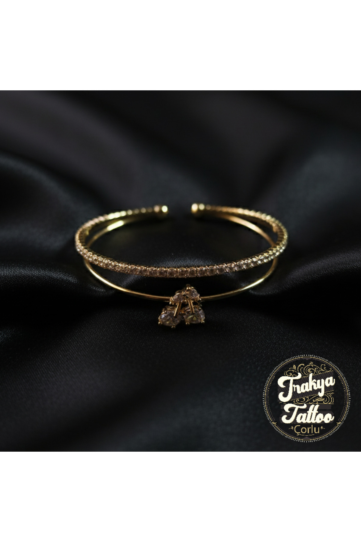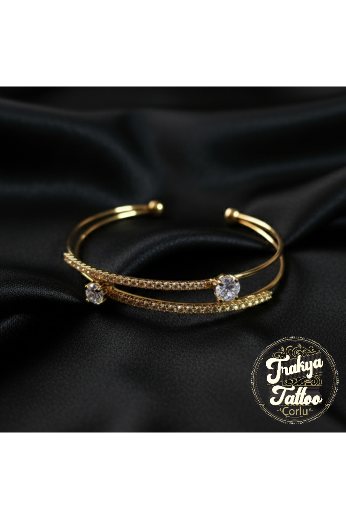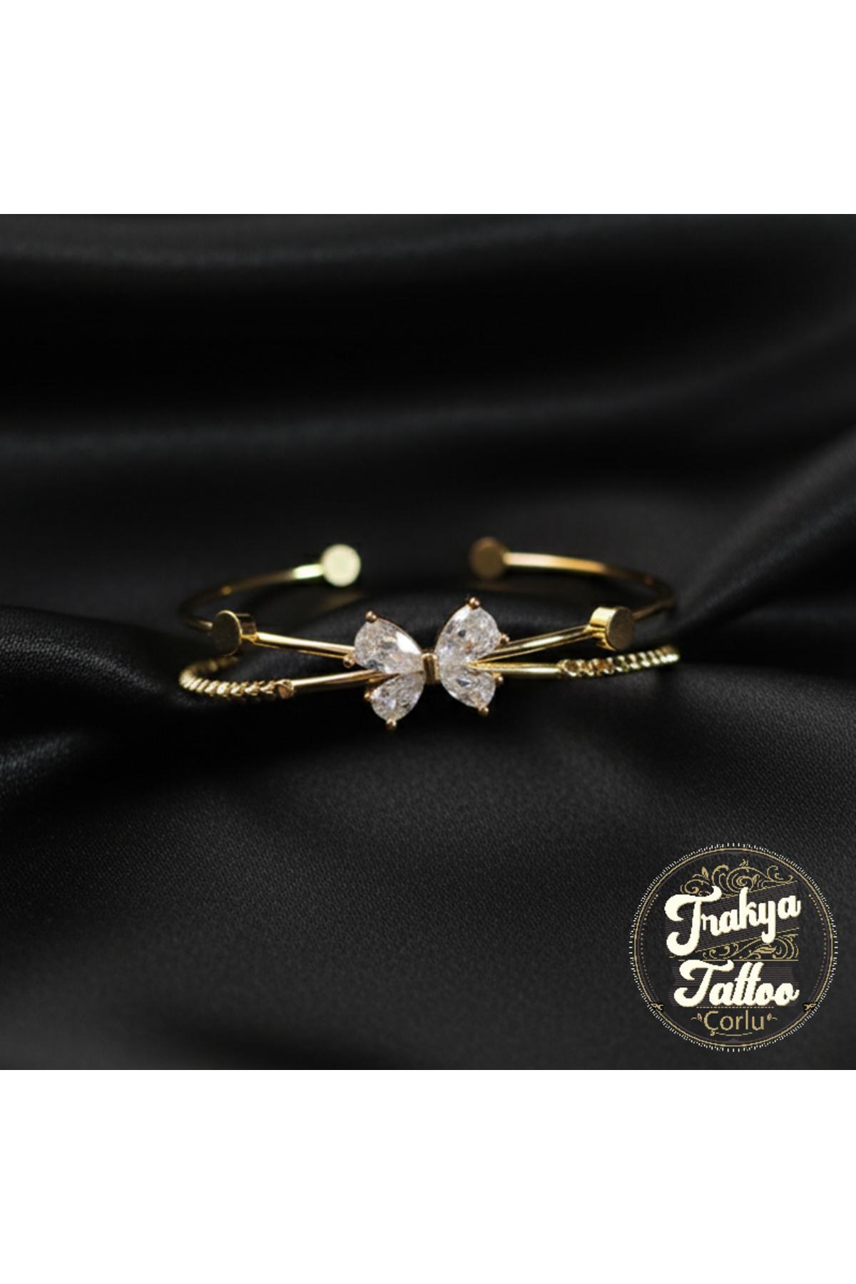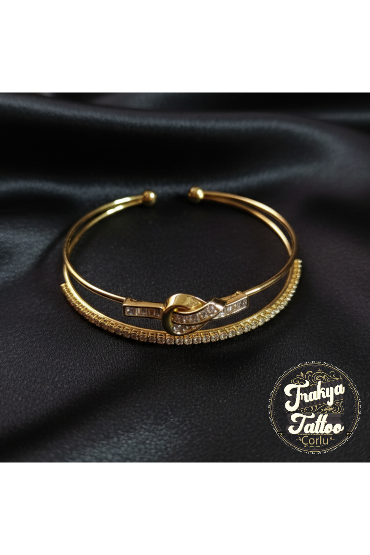 Altın Rengi Göz ve Taş Detaylı Zarif Çelik Bileklik