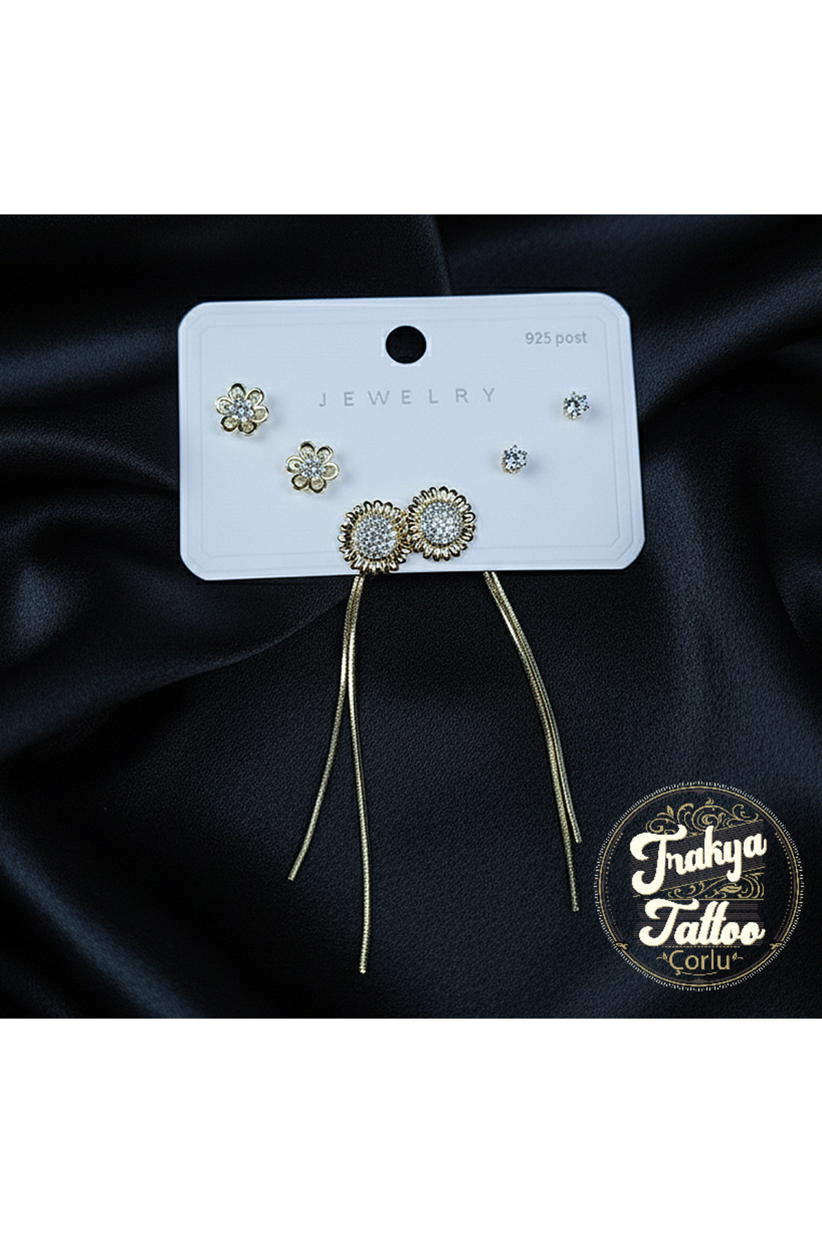 925 Ayar Gümüş 6 lı set Papatya Küpe Altın Rengi
