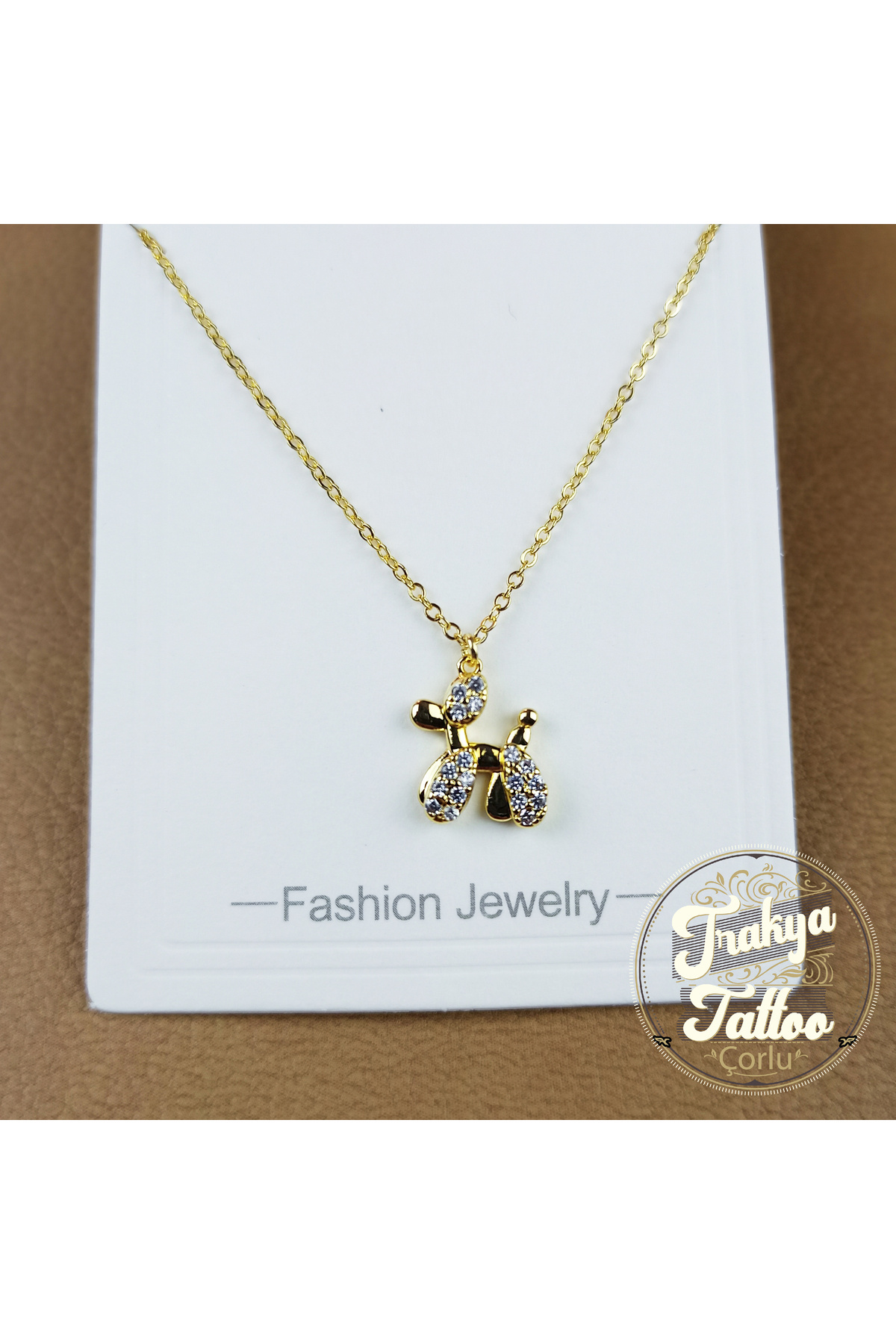 Minik Köpek Figürlü Altın Rengi Kolye