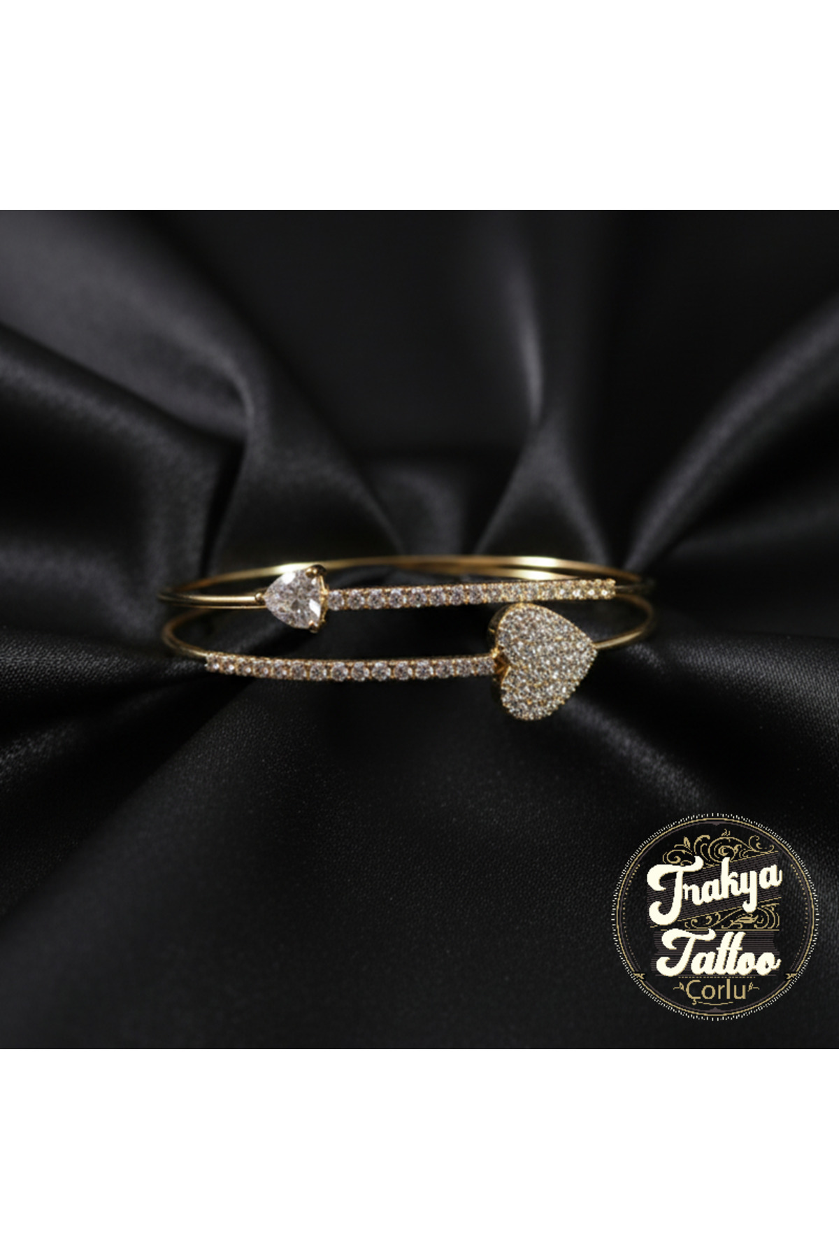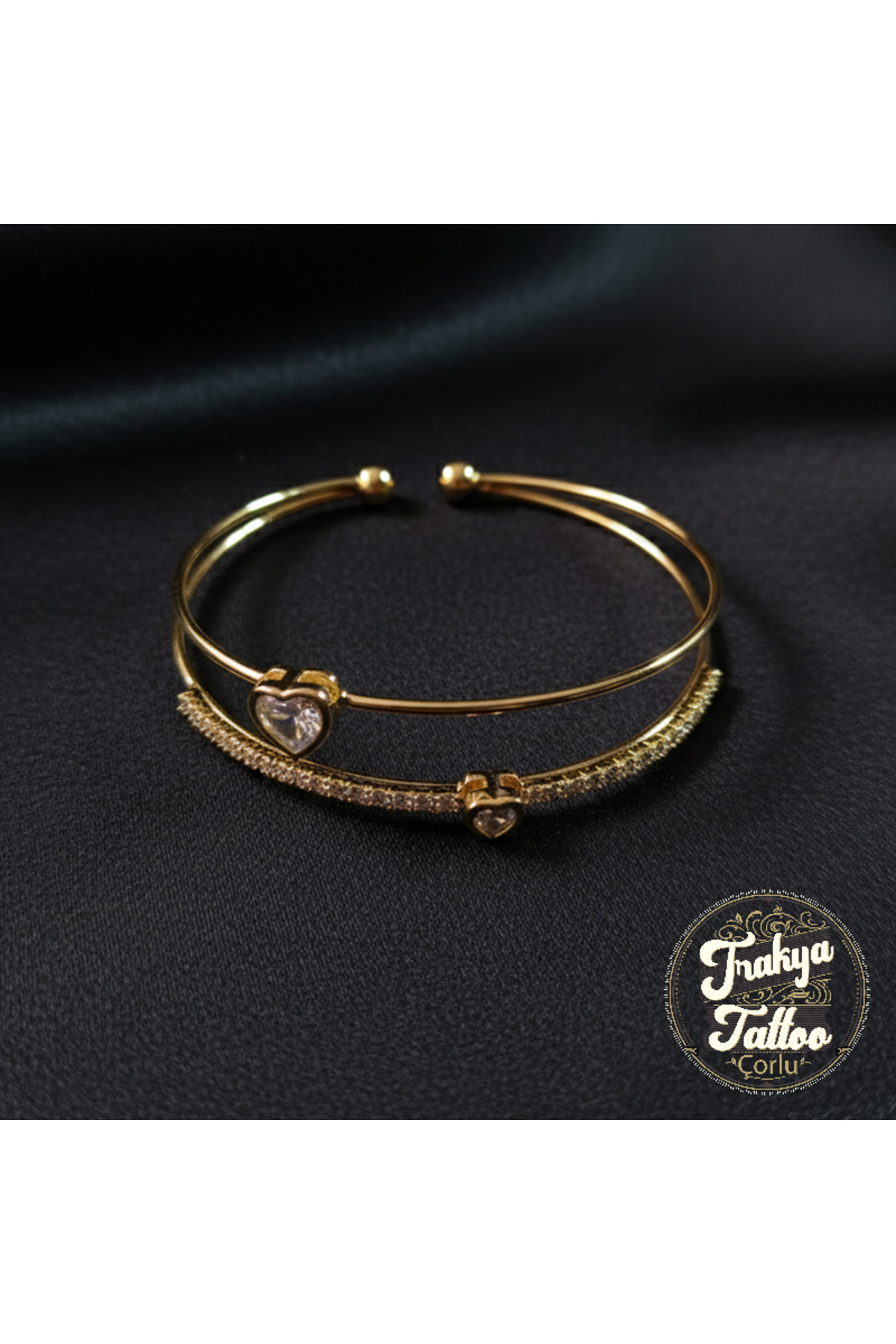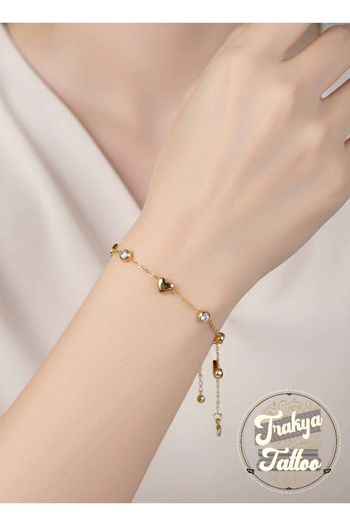 Altın Rengi Kalpli ve Taşlı Zarif Çelik Bileklik