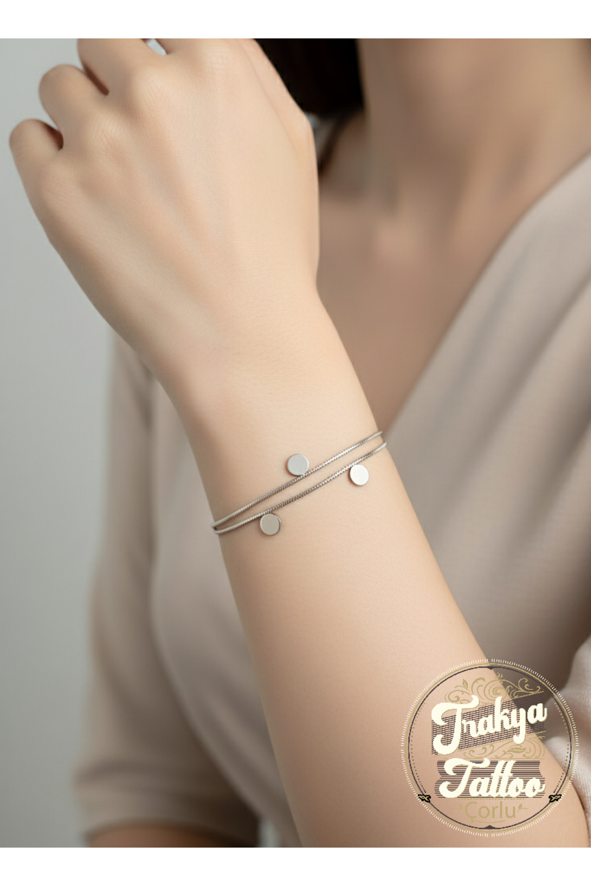 Gümüş Renk Çift Sıra Zarif Çelik Bileklik
