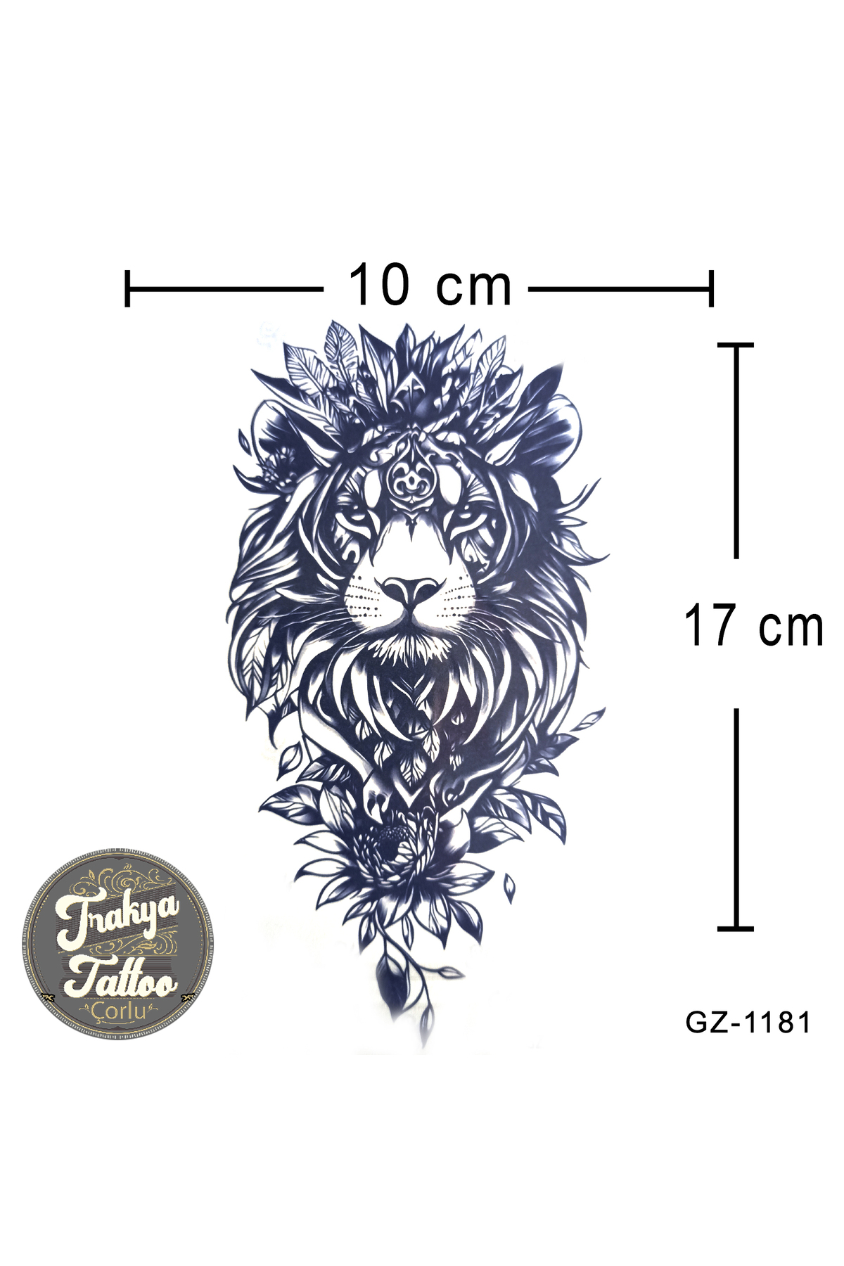 Yarı Kalıcı Dövme Aslan ve Çiçek Geçici Dövme