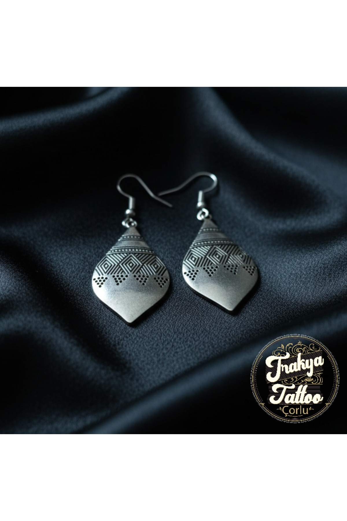 Yaprak Figürlü Gümğüş Kaplama Bohem Küpe