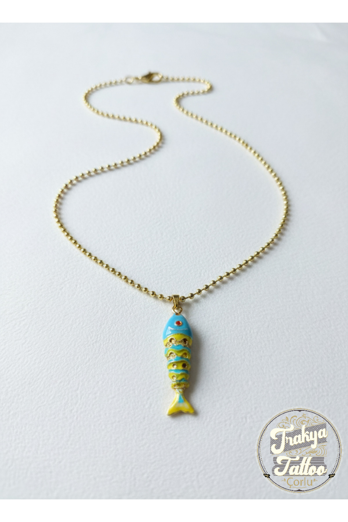 Mineli Çelik Mavi Sarı Balık Kolye Şans Kolyesi