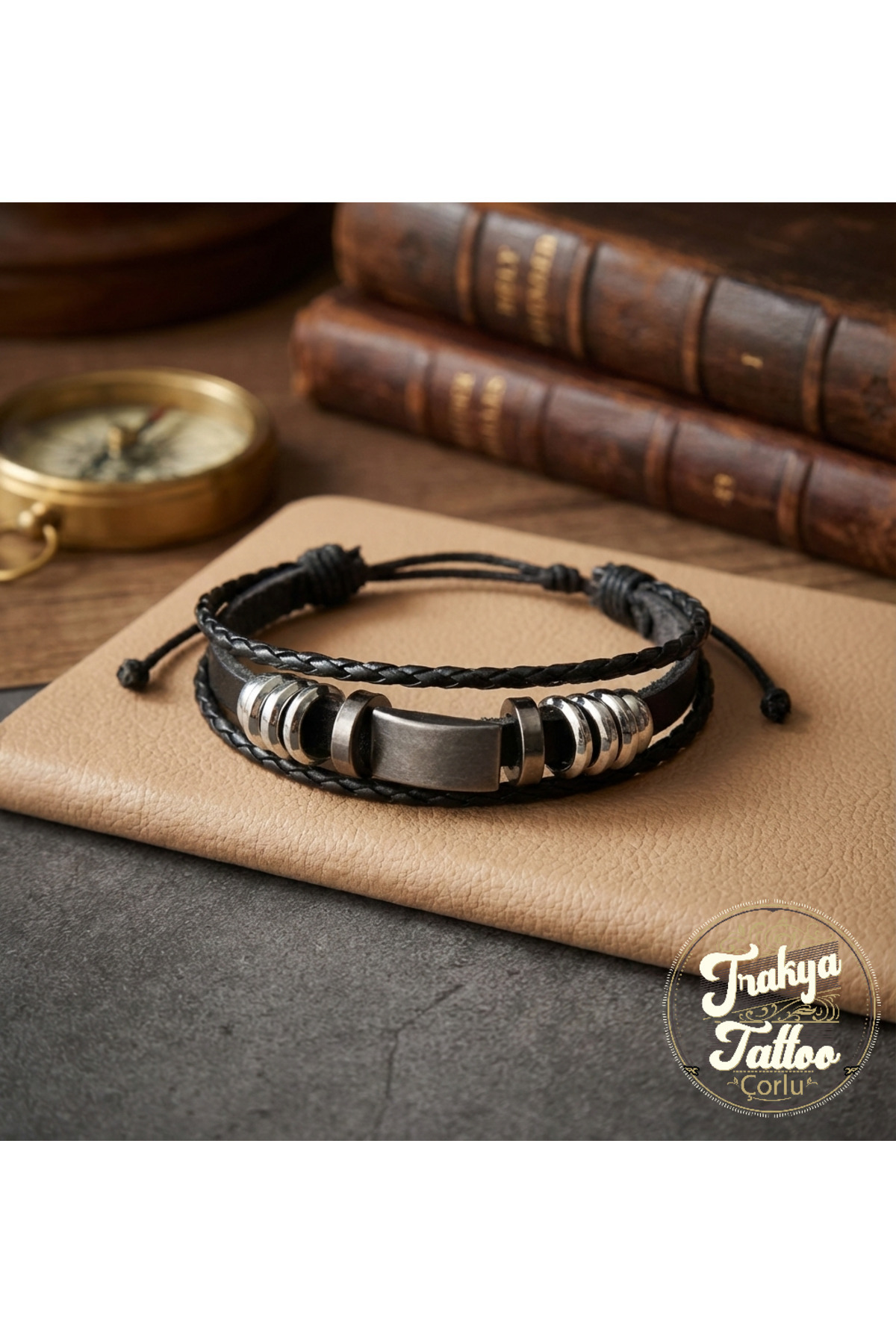 Çelik Zirkon 3 Taşlı Şahmeran Bileklik