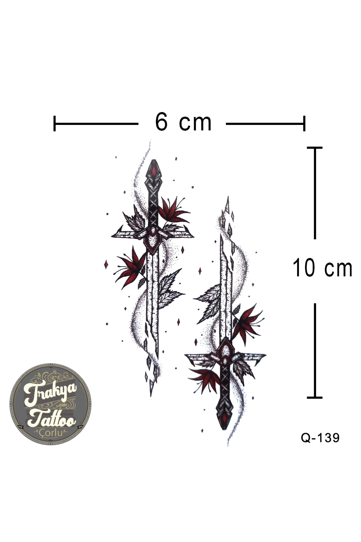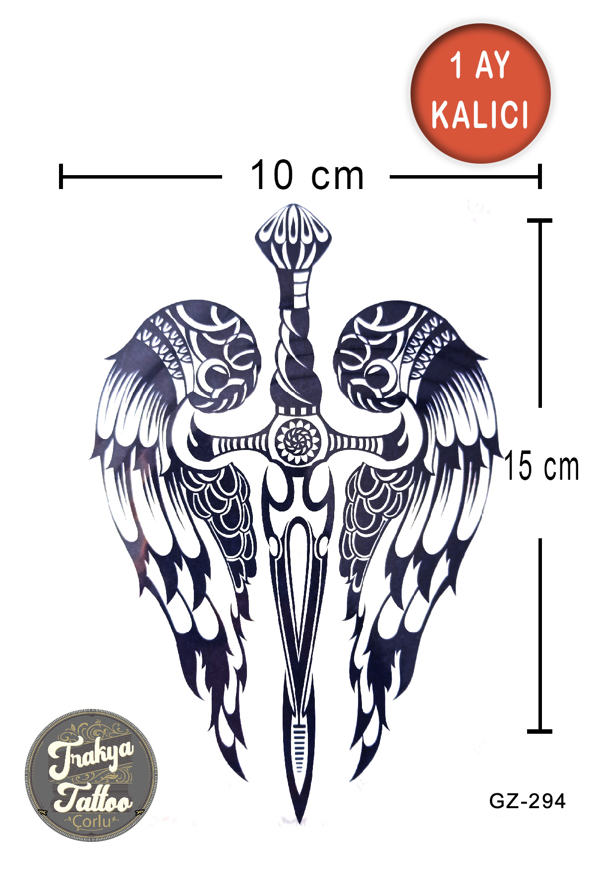 1 Ay Kalıcı Dövme Kanatlı Kılıç Geçici Dövme