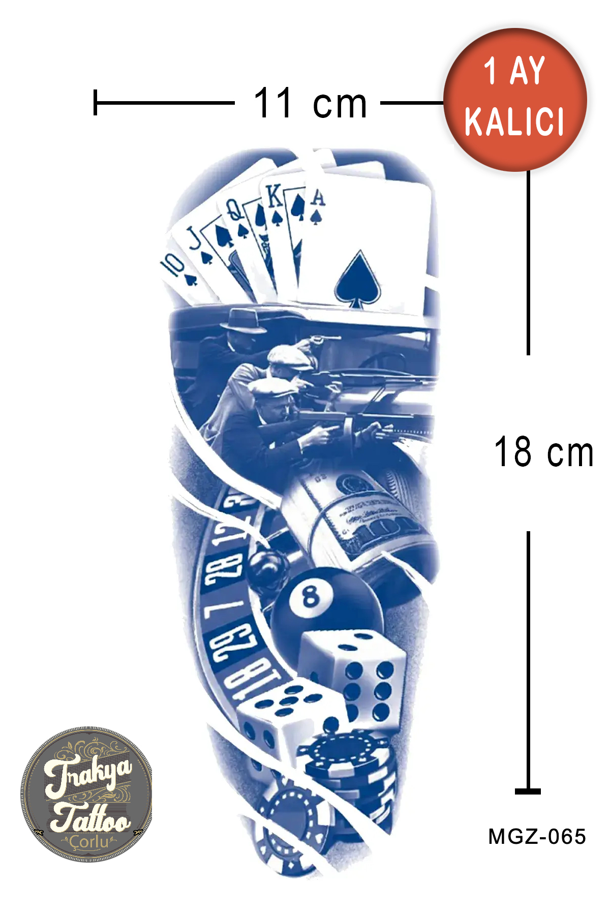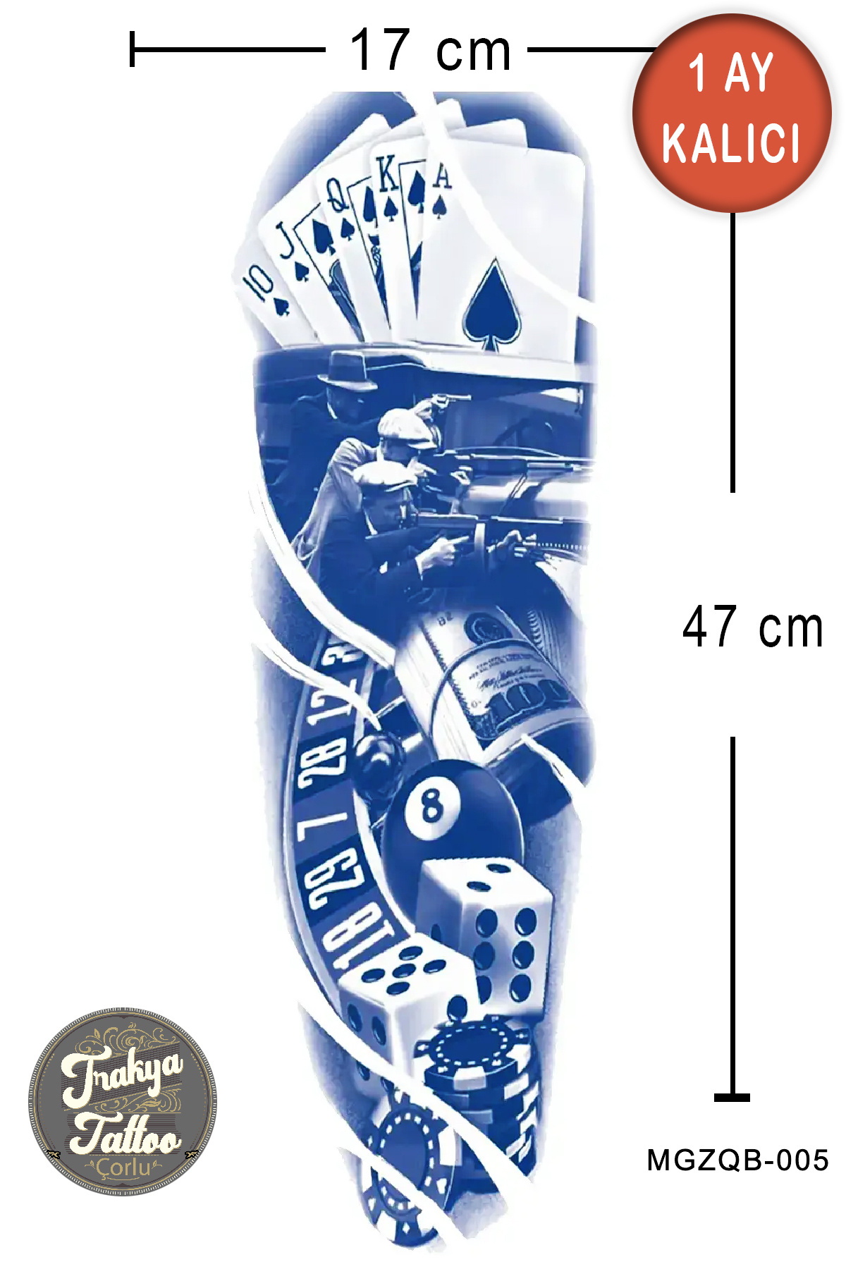 1 Ay Kalıcı Dövme Yarım Kol Poker Geçici Dövme