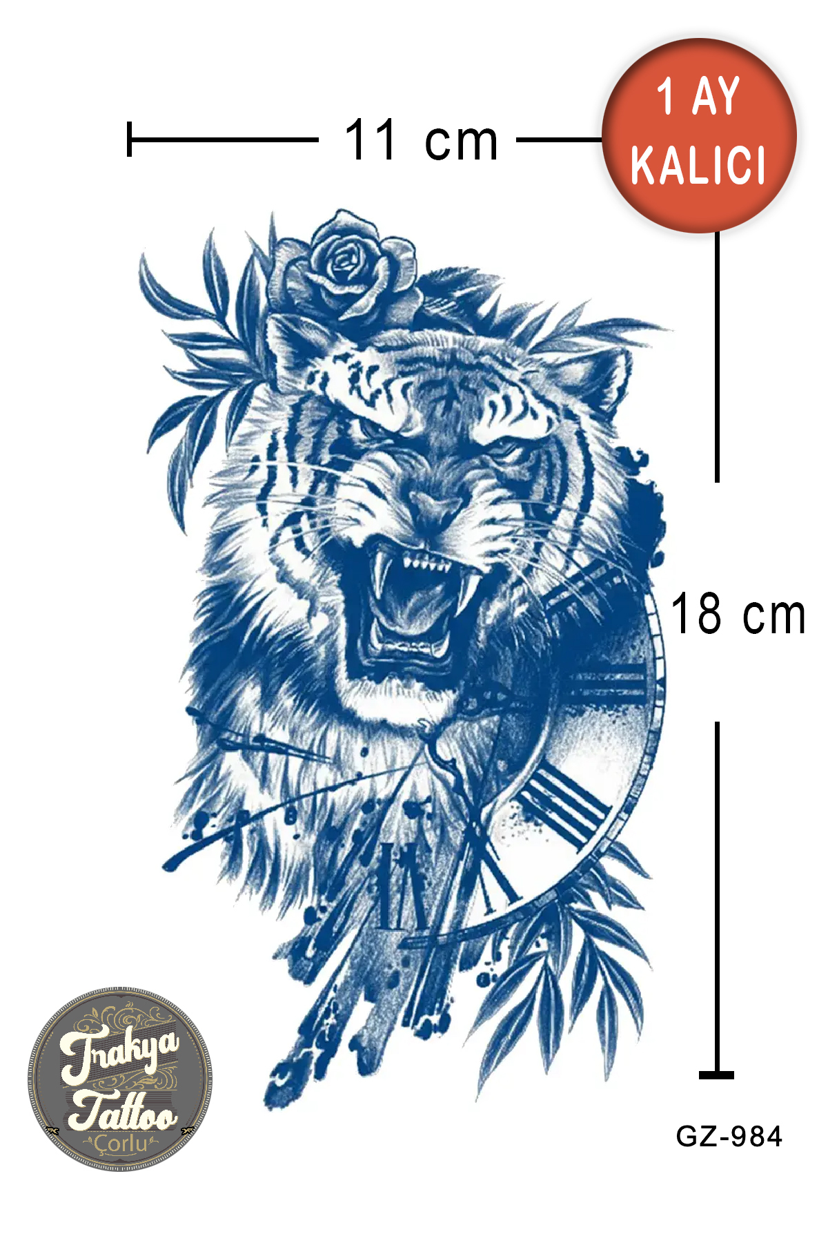 1 Ay Kalıcı Dövme Yarım Kol Kaplan Saat Geçici Dövme