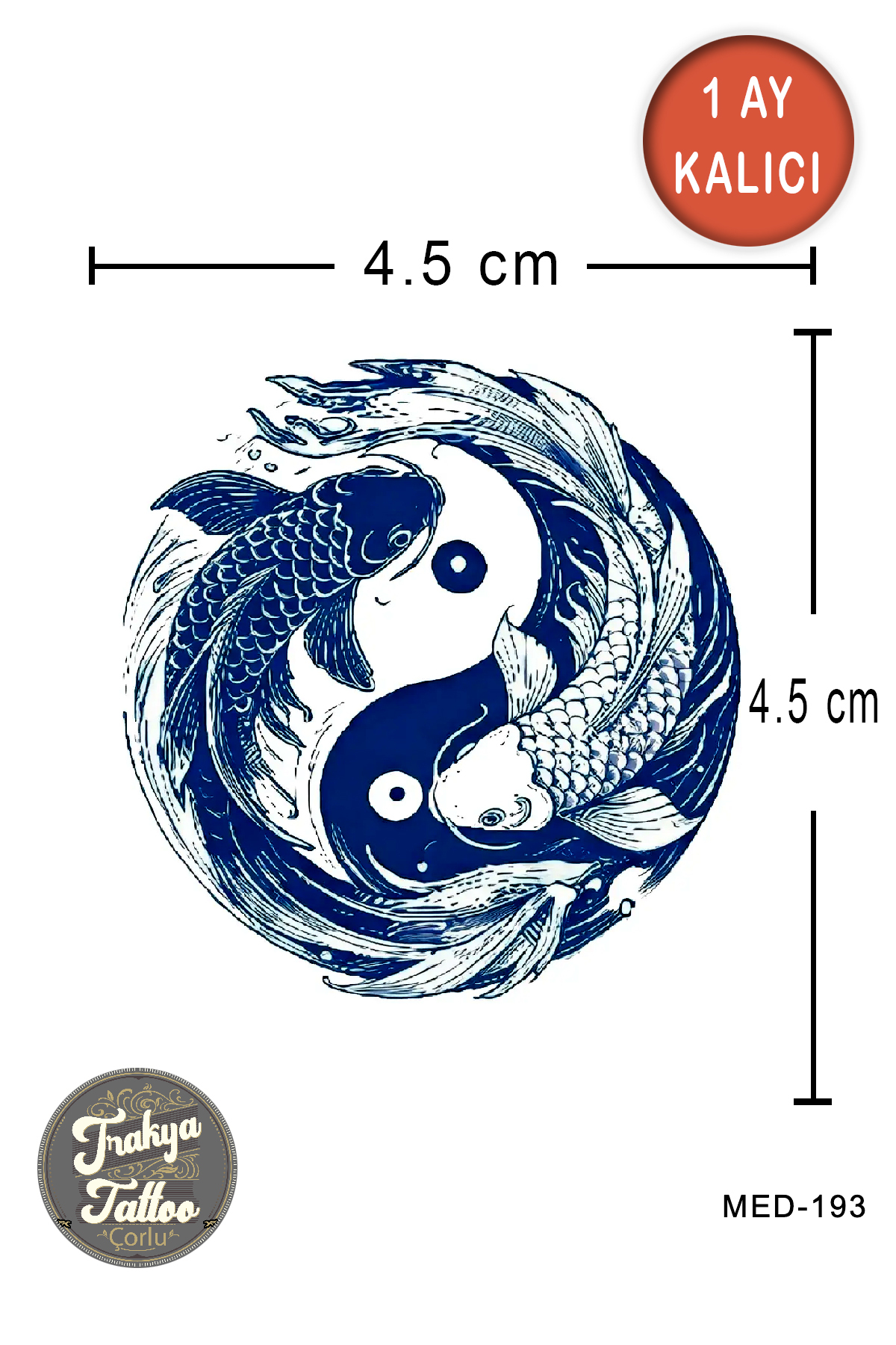 1 Ay Kalıcı Dövme Minimal Yin-Yang Koi Balığı Geçici Dövme