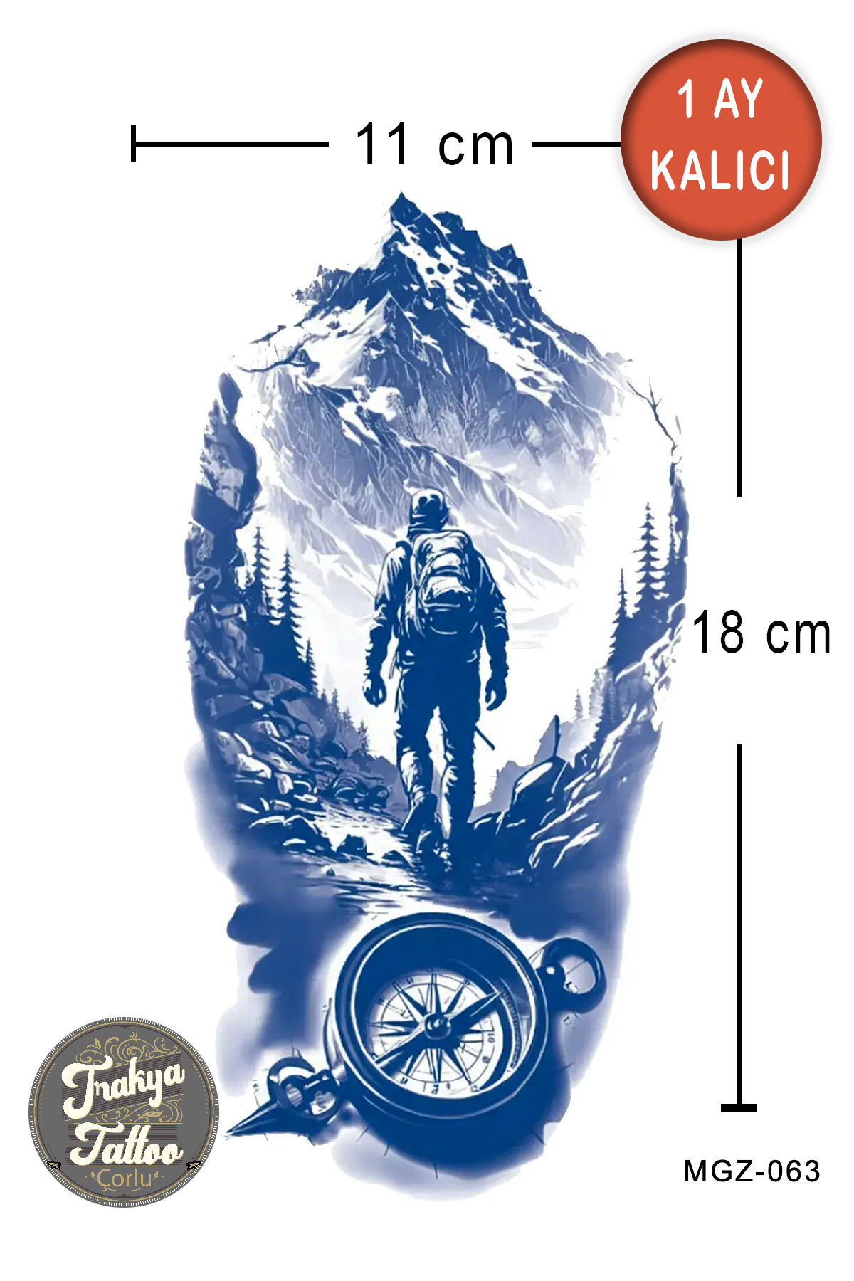 1 Ay Kalıcı Dövme Yarım Kol Pusula ve Dağcı Geçici Dövme