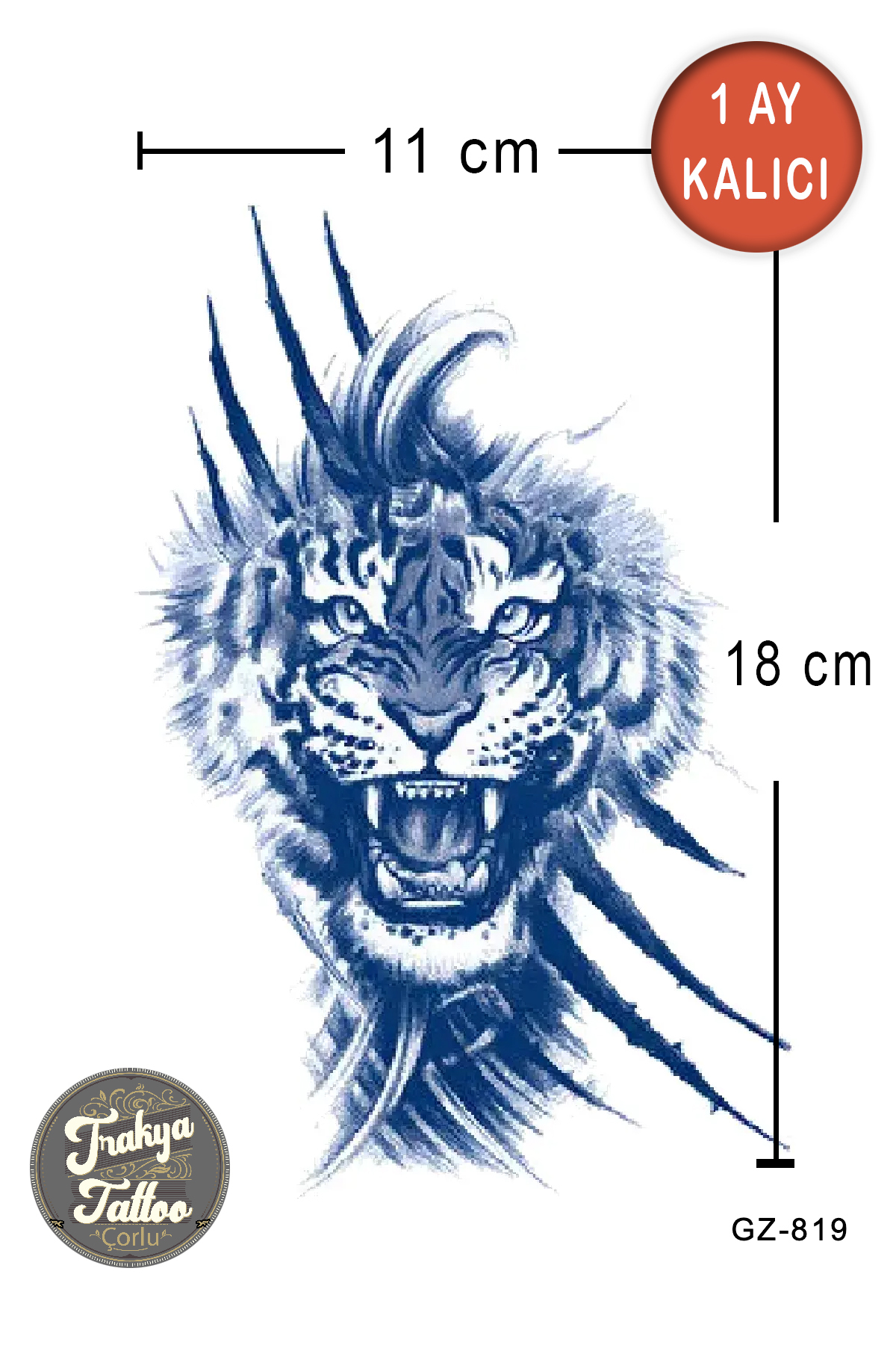 1 Ay Kalıcı Dövme Orta Boy Aslan Geçici Dövme