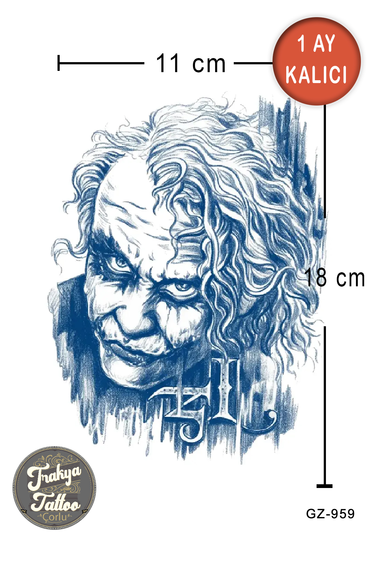 1 Ay Kalıcı Dövme Orta Boy Joker Geçici Dövme