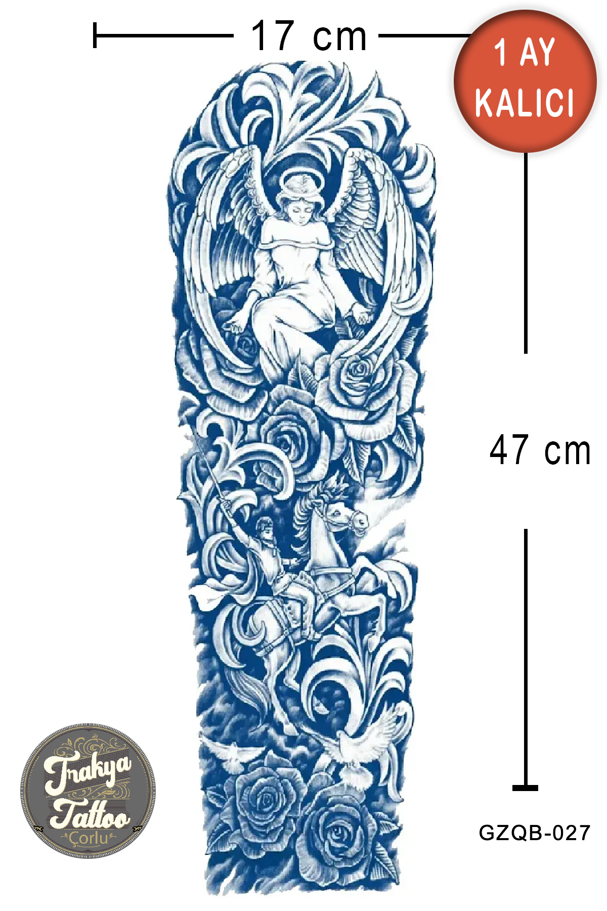 1 Ay Kalıcı Dövme Büyük Boy Yarım Kol Bacak ve Kol Şövalye Geçici Dövme