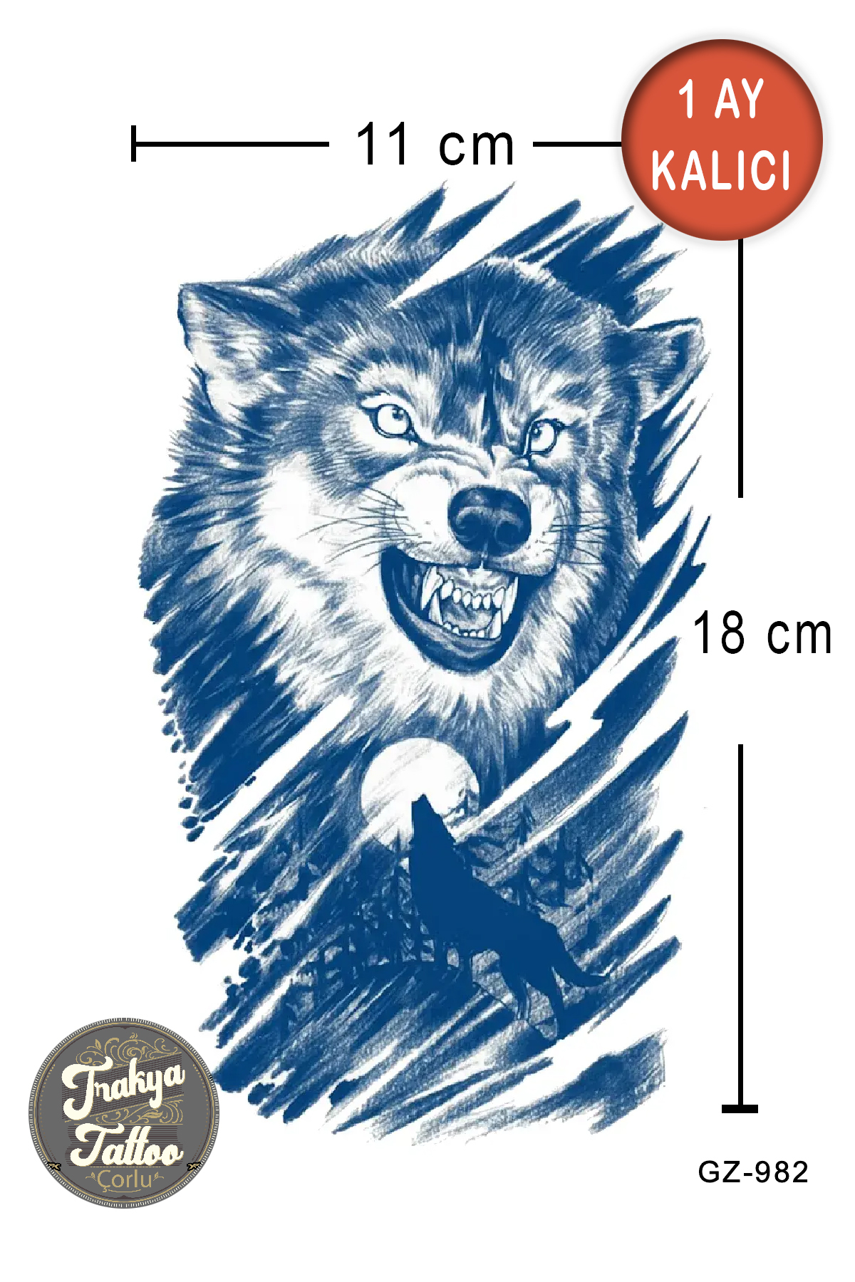 1 Ay Kalıcı Dövme Orta Boy Kurt Geçici Dövme