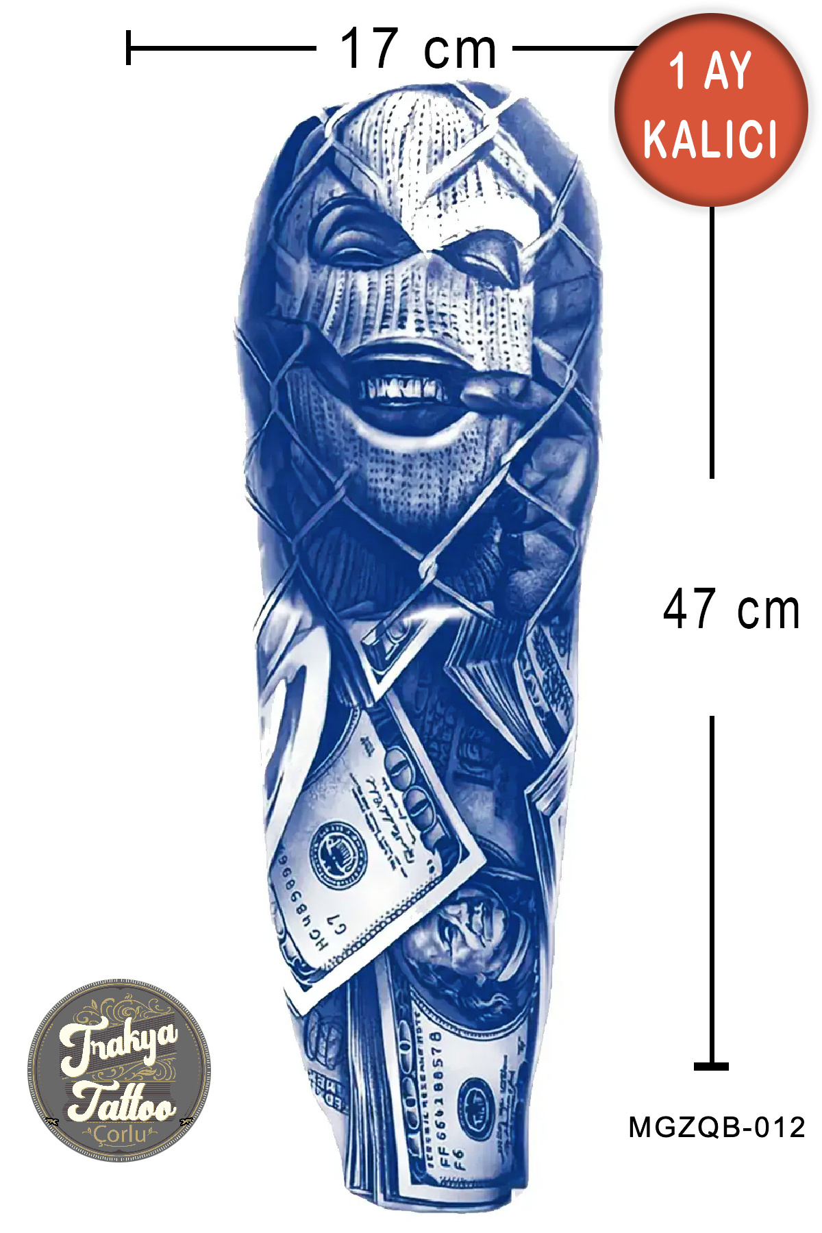 1 Ay Kalıcı Dövme Tam Kol Maskeli Adam Dolar Geçici Dövme