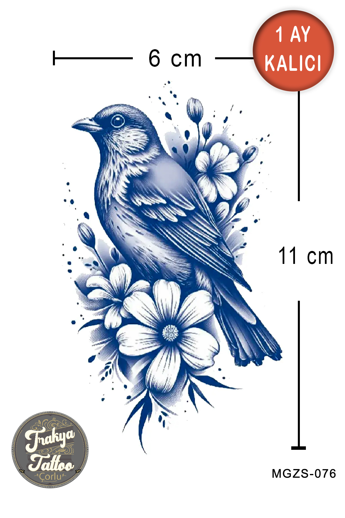1 Ay Kalıcı Dövme Orta Boy Çiçek ve Kuş Geçici Dövme