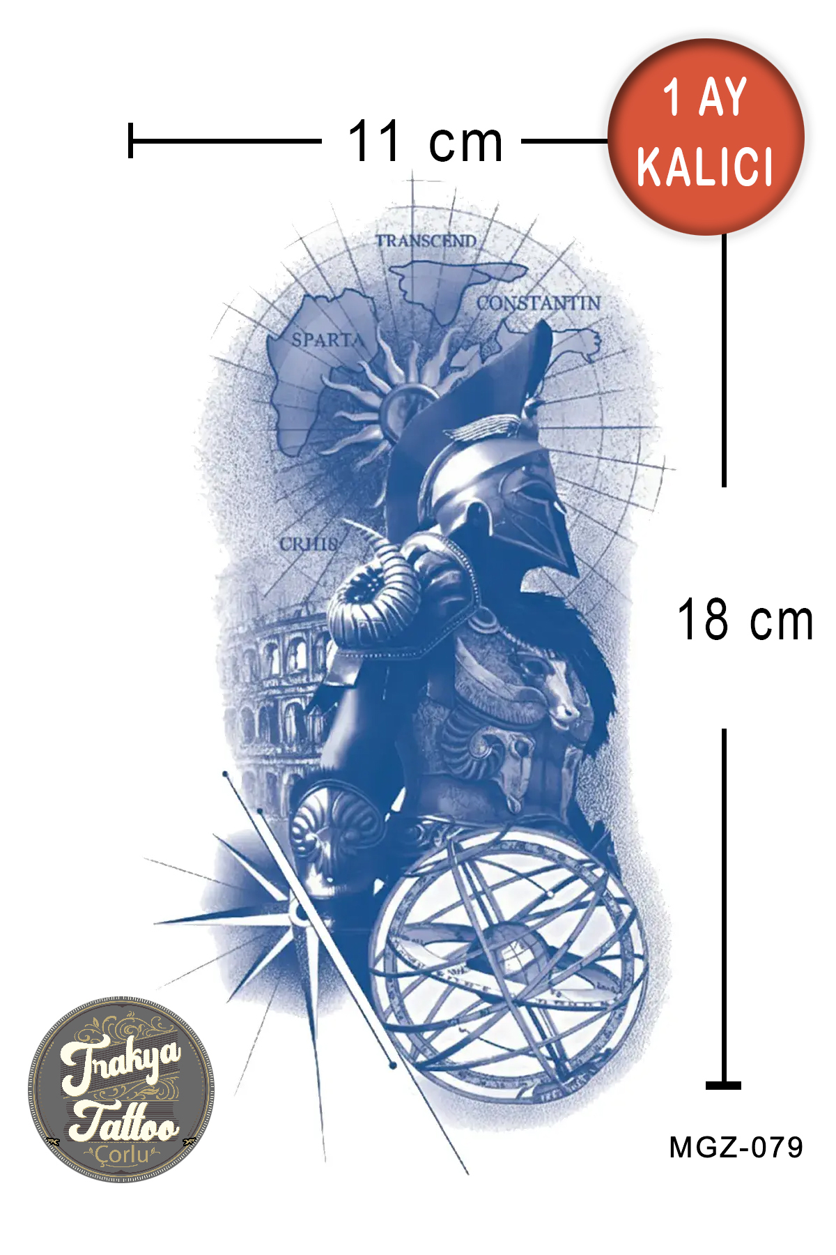 1 Ay Kalıcı Dövme Tam Kol Antik Yunan ve Savaşçı Geçici Dövme