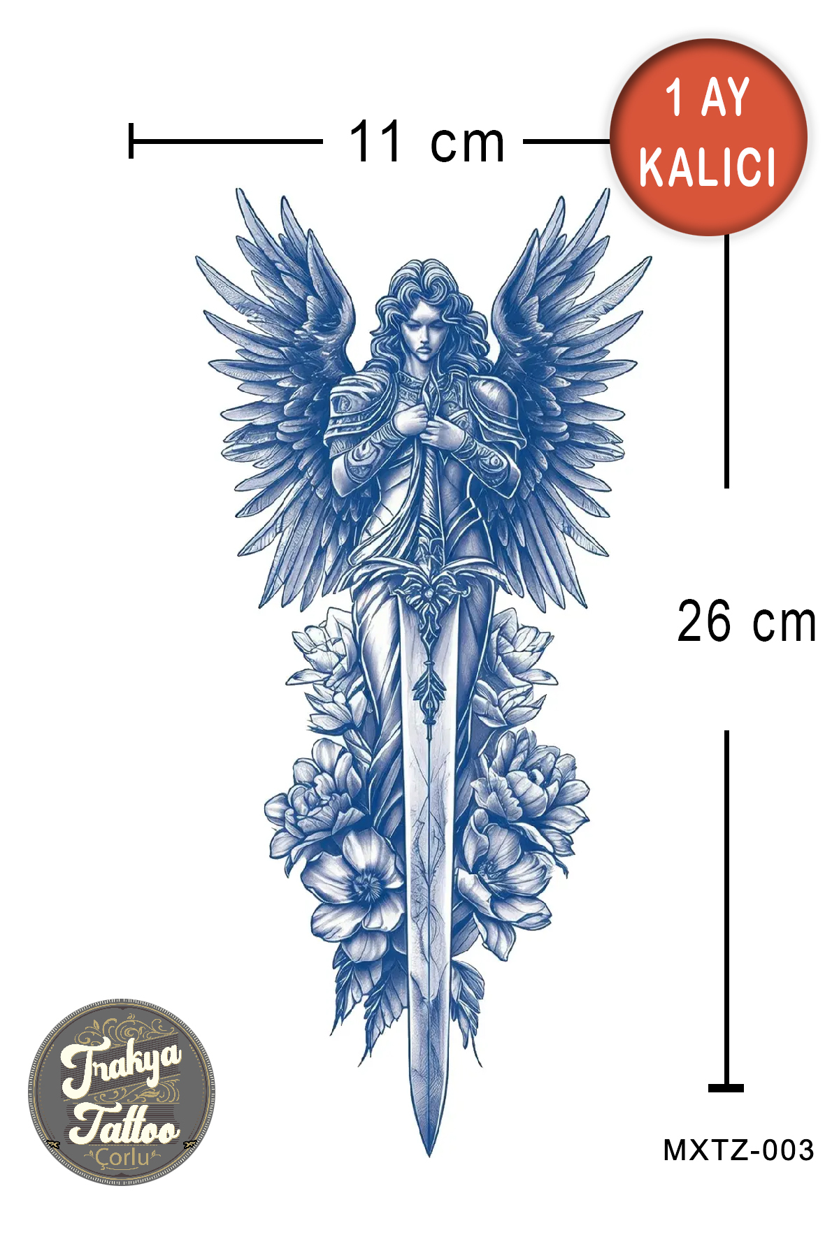 1 Ay Kalıcı Dövme Orta Boy Katanlı Düşen Melek Geçici Dövme